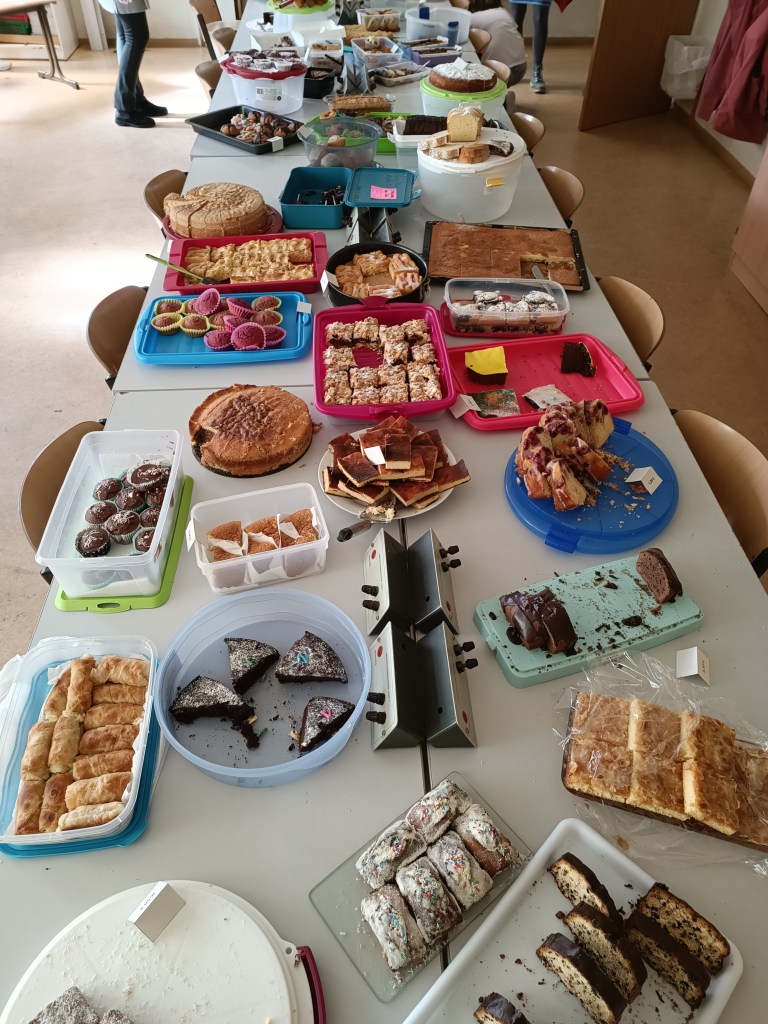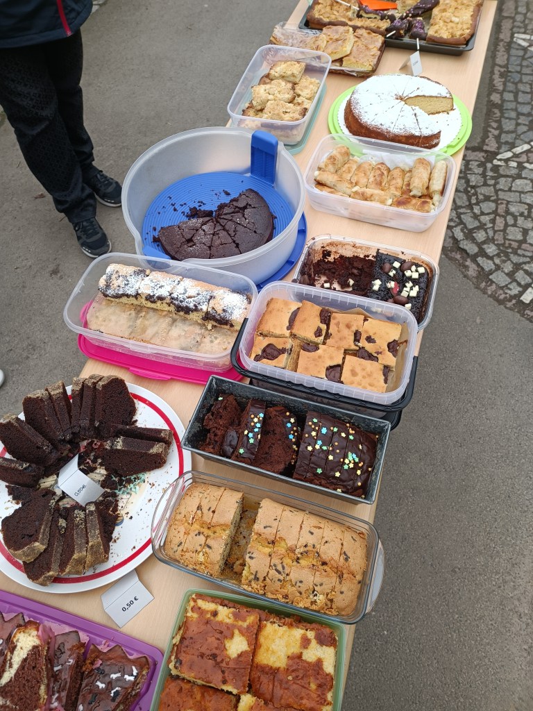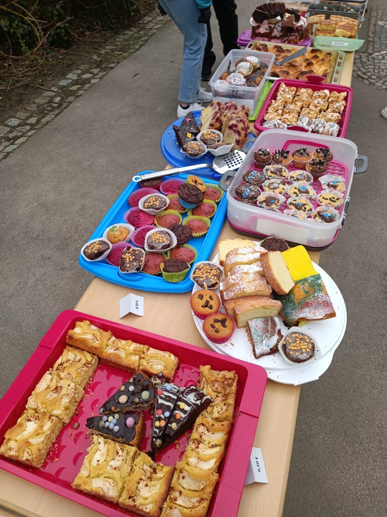 der heutige Spendenbasar ist, bei all unserer Vorstellungskraft, übertroffen worden. Es sind so viele Kuchen, Muffins und Süßgebäck zusammen gekommen wofür wir uns bei Ihnen bedanken möchten. Ebenso danken wir den herzlichen Eltern, welche heute beim Aufbau und der Ausgabe geholfen haben.